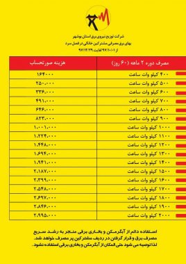 دشتستان بزرگ: به اطلاع هم استانیهای گرامی می رساند تعرفه زمستانی برق از یکم دی ماه بصورت فصل سرد محاسبه می شود.