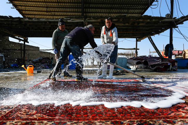 قالیشویان این روزها در آستانه سال جدید جان خسته فرش را میشوید و میروبد تا رنگ و نقش فرشها در انتظار بهار نفسی تازه گیرند.